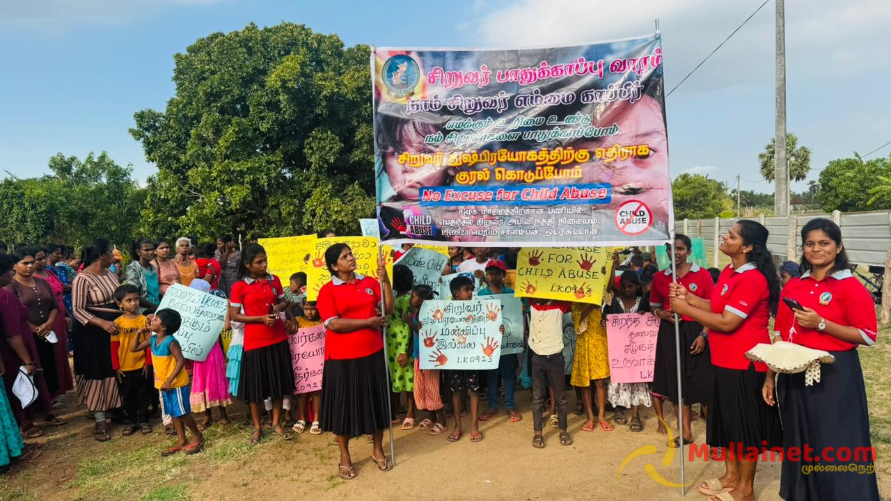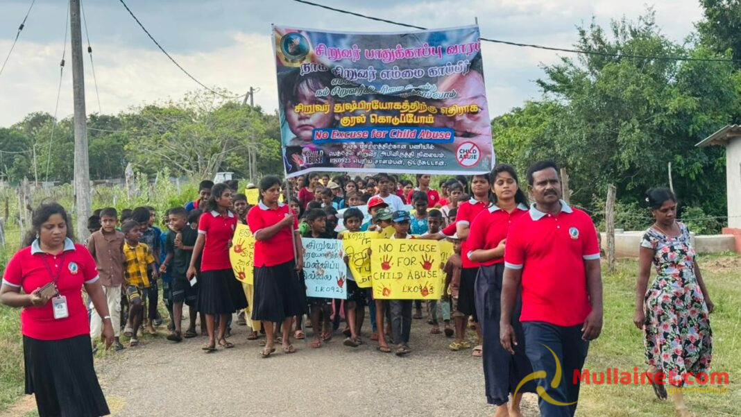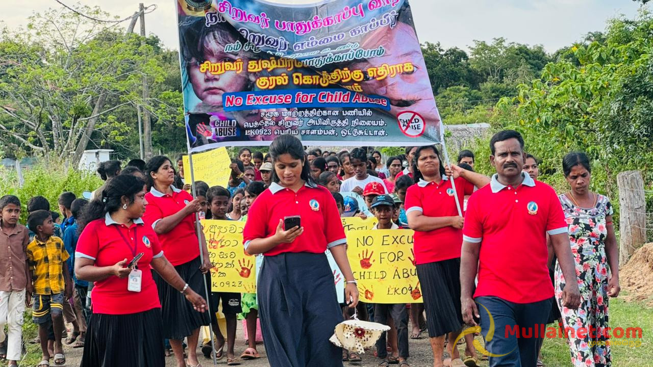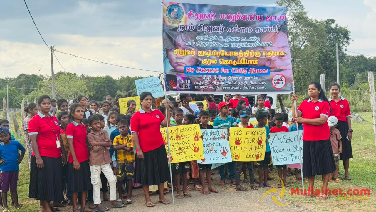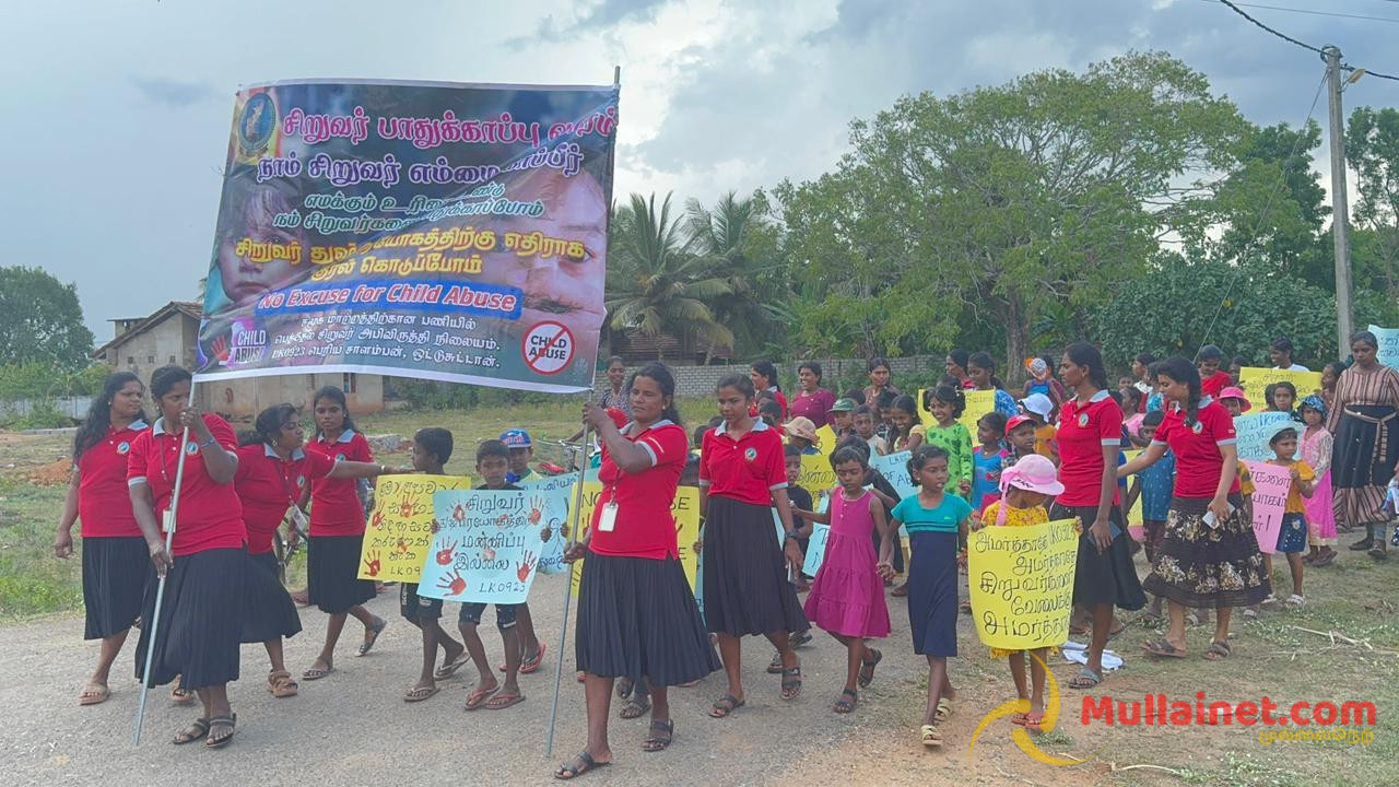 சிறுவர் பாதுகாப்பு வாரத்தை முன்னிட்டு நாம் சிறுவர் எம்மை காப்பீர் எனும் தொனிப்பொருளிலான விழிப்புணர்வு பேரணியினை முத்தையன்கட்டுகுளம் கிராம சேவையாளர் பவிதா ஆரம்பித்து வைத்திருந்தார்.