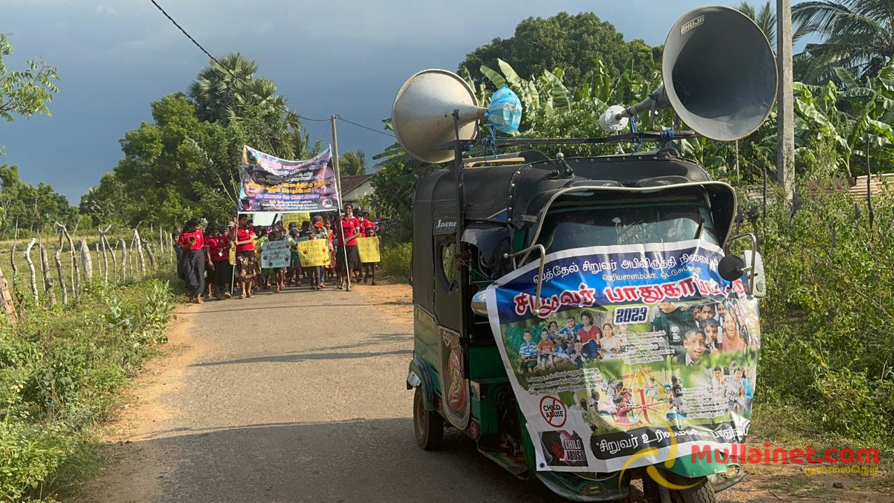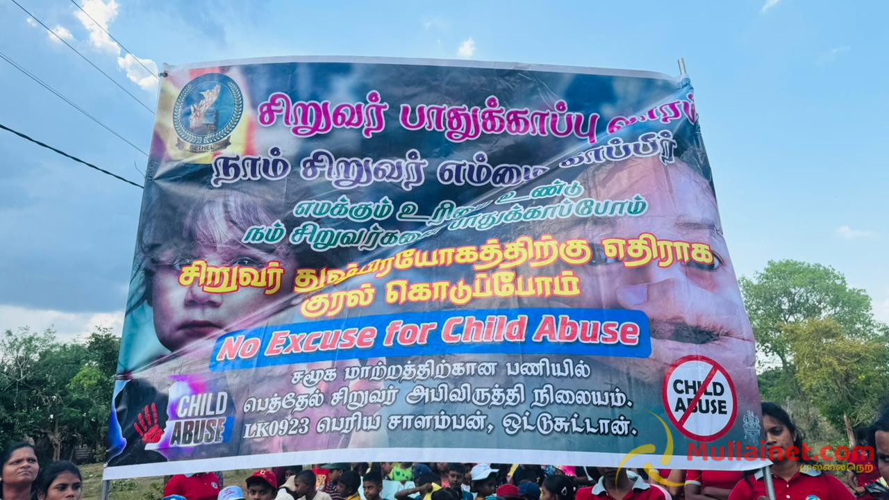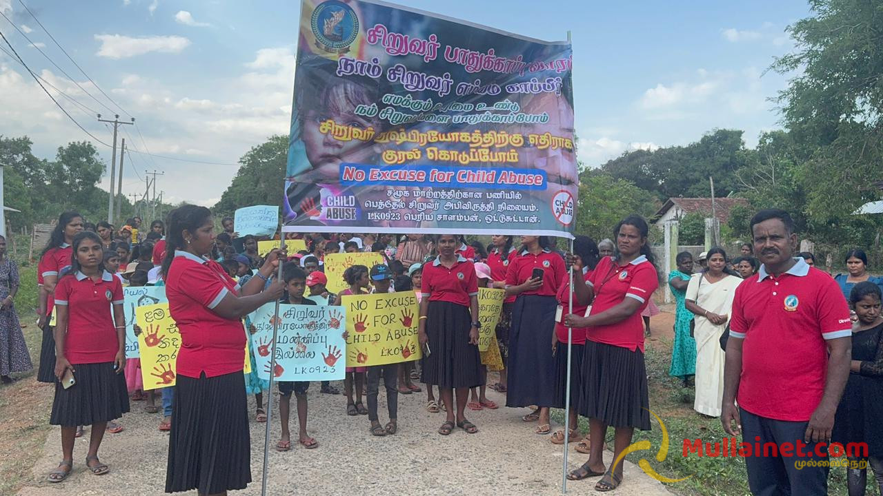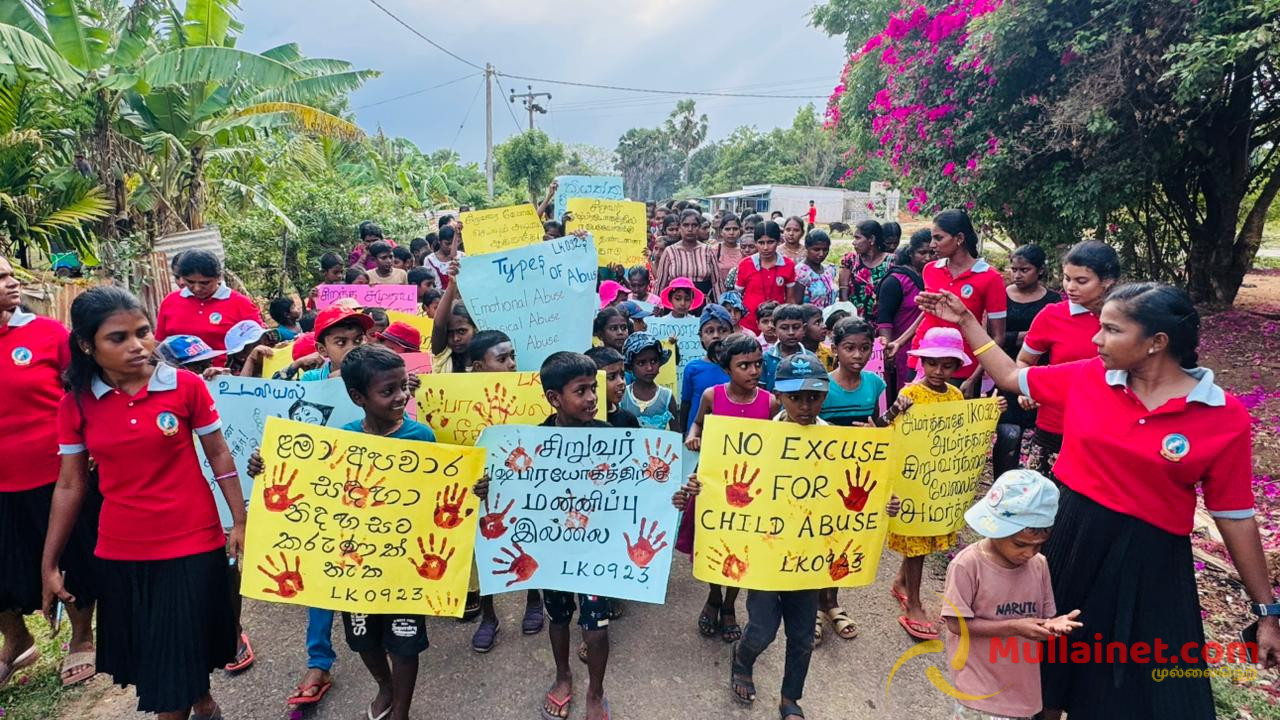 சிறுவர் பாதுகாப்பு வாரத்தை முன்னிட்டு நாம் சிறுவர் எம்மை காப்பீர் எனும் தொனிப்பொருளிலான விழிப்புணர்வு பேரணியினை முத்தையன்கட்டுகுளம் கிராம சேவையாளர் பவிதா ஆரம்பித்து வைத்திருந்தார்.