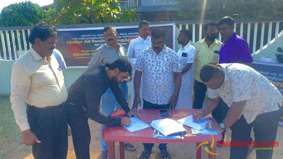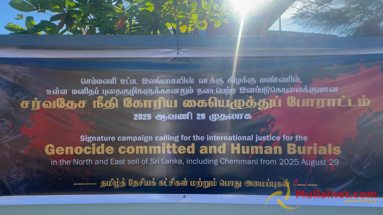 செம்மணி உட்பட இலங்கையின் வடக்கு, கிழக்கு மண்ணில் இனங்காணப்பட்ட மனிதப் புதைகுழிகள் மற்றும் நடைபெற்ற தமிழ் இனப்படுகொலைகளுக்கும் நீதியைக் கோருவதற்காக தமிழ்த் தேசியக் கட்சிகள் மற்றும் பொது அமைப்புகளின் ஏற்பாட்டில் கையெழுத்துச் சேகரிக்கும் செயற்பாடு வடக்கு, கிழக்க மாகாணங்களின் பலபகுதிகளிலும் இடம்பெற்றுவருகின்றது.