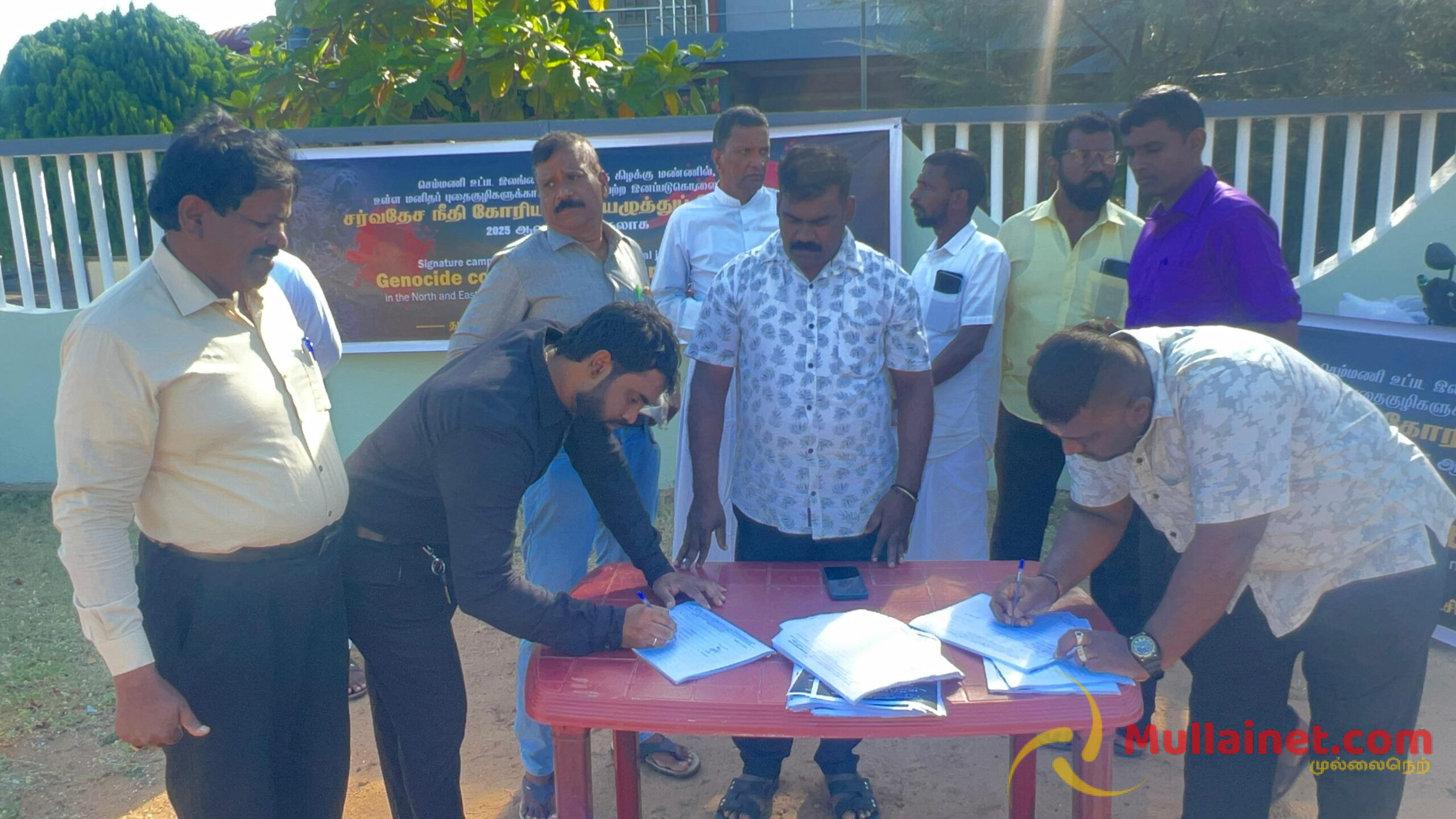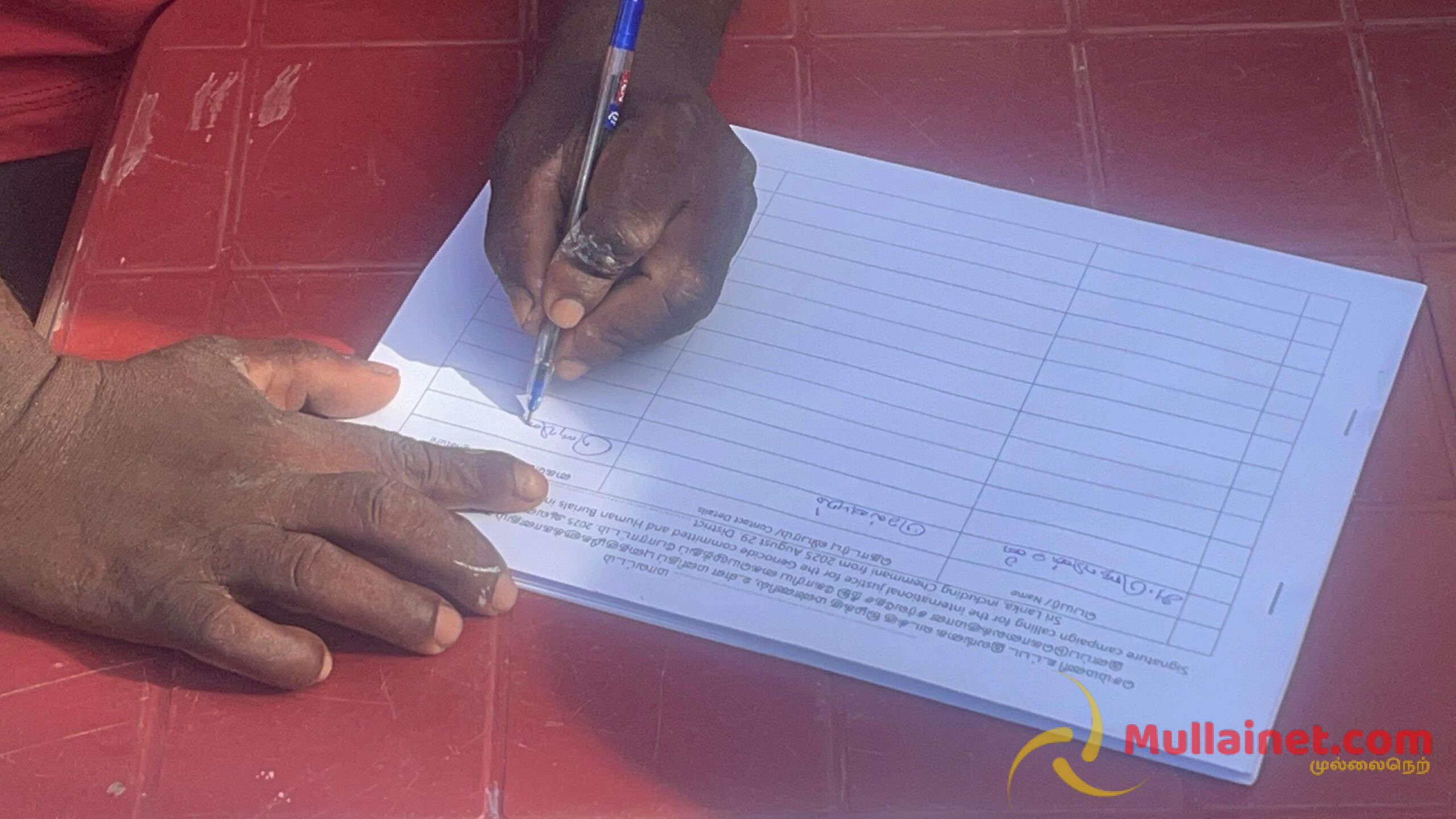 அந்தவகையில் குறித்த கையெழுத்துச் சேகரிக்கும் செயற்பாடு முல்லைத்தீவு நகரில் இன்று (29.08.2025) கரைதுறைப்பற்று பிரதேச சபை உறுப்பினர் ஞா.ஜுட்சன் தலைமையில் முன்னெடுக்கப்பட்டது.