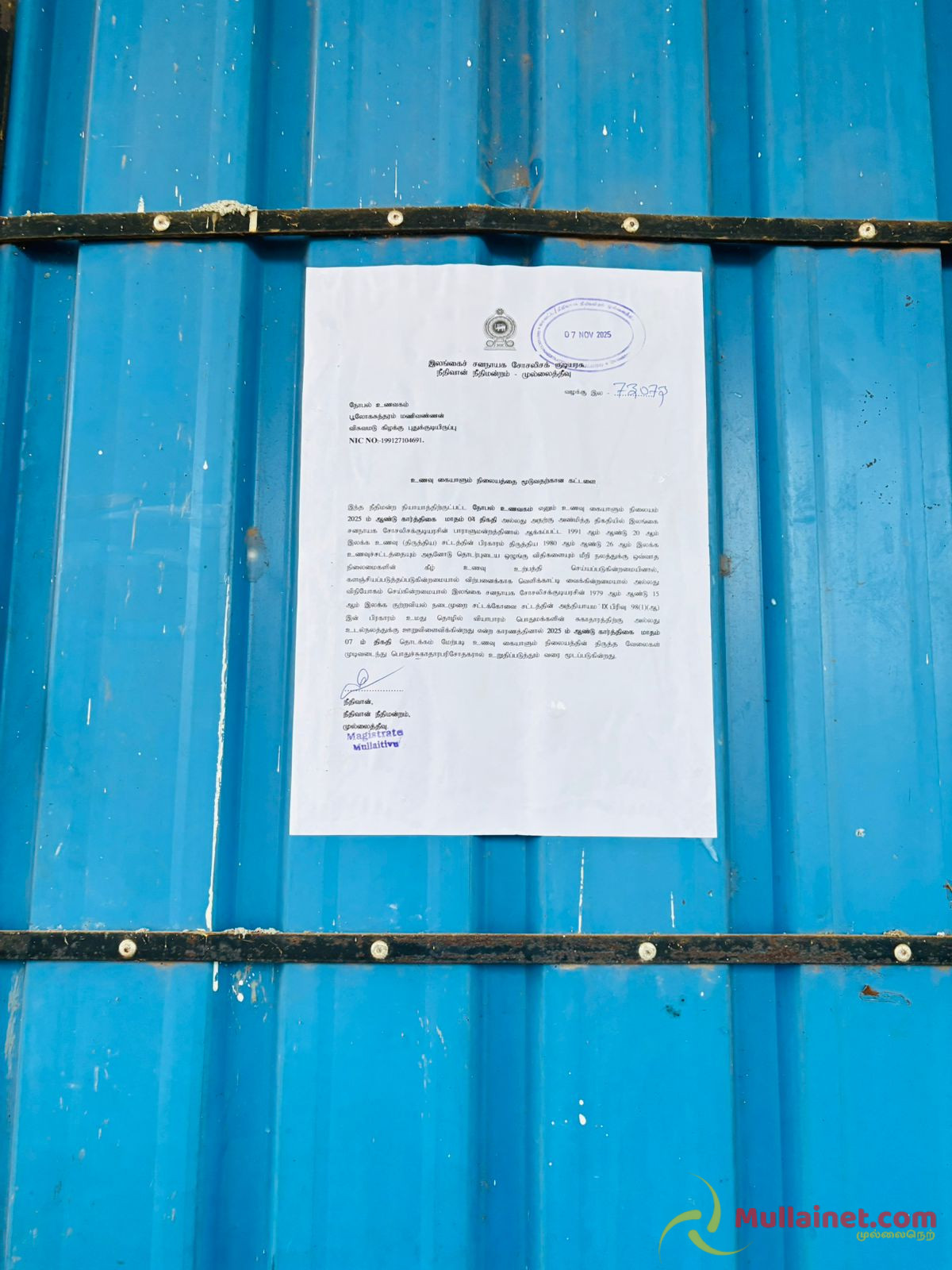 முல்லைத்தீவு மாவட்டத்தின் விசுவமடு பகுதியில் சுகாதார விதிமுறைகளை மீறி இயங்கிய ஒரு உணவகம் திடீர் சோதனையின் போது கண்டறியப்பட்டதையடுத்து அதிகாரிகளால் மூடப்பட்டு சீல் வைக்கப்பட்டதுடன், உரிமையாளருக்கு 50,000 ரூபா தண்டமும் இன்றையதினம் (07.11.2025) விதிக்கப்பட்டுள்ளது.