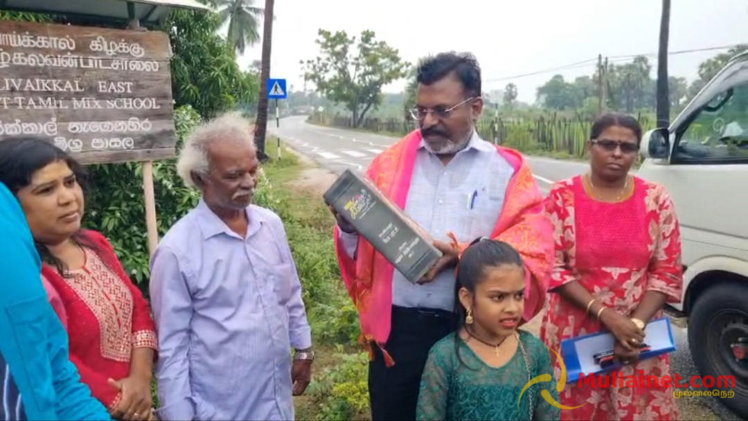 முல்லைத்தீவு மாவட்டத்திற்கான திடீர் வருகையின்போது அவரை அப்பகுதி பொதுமக்கள் வரவேற்று, பொன்னாடை போர்த்தி மரியாதை செய்தனர்.
