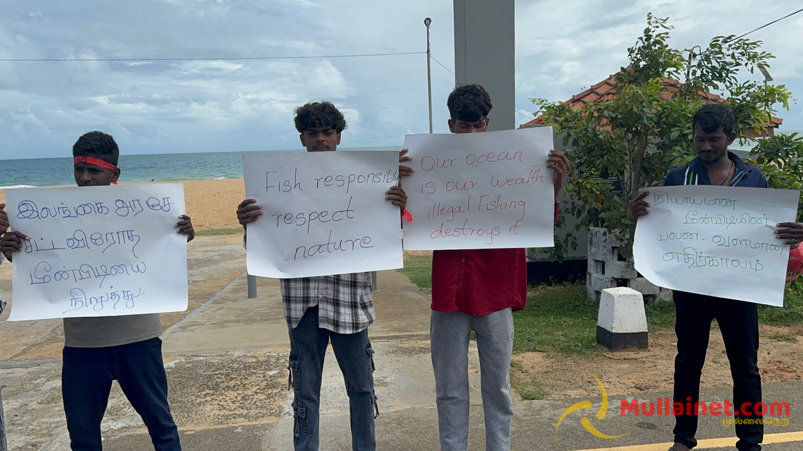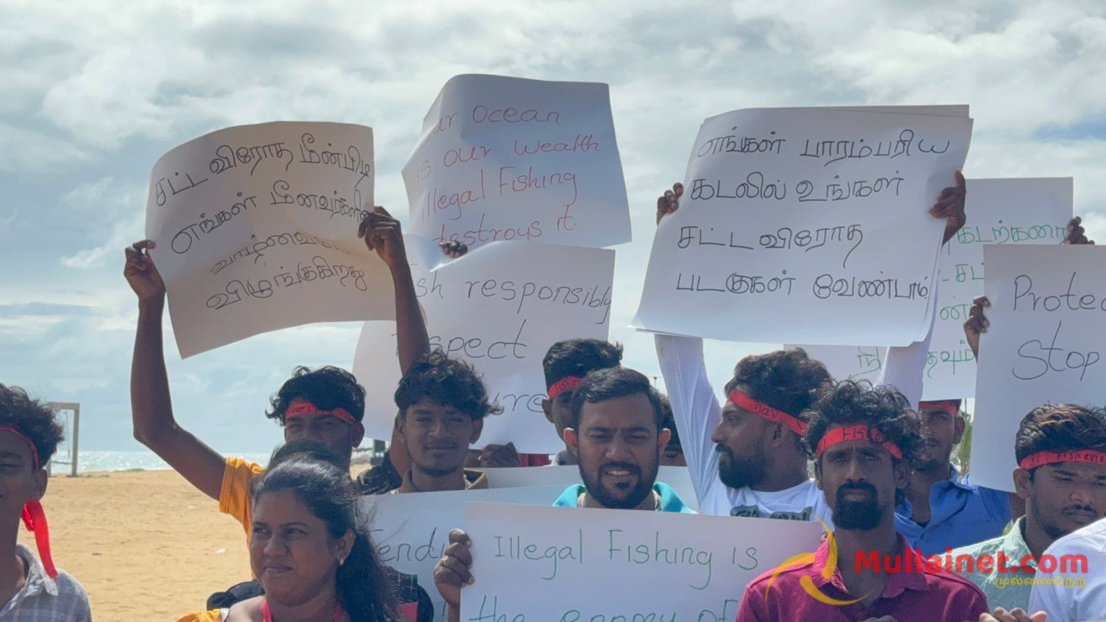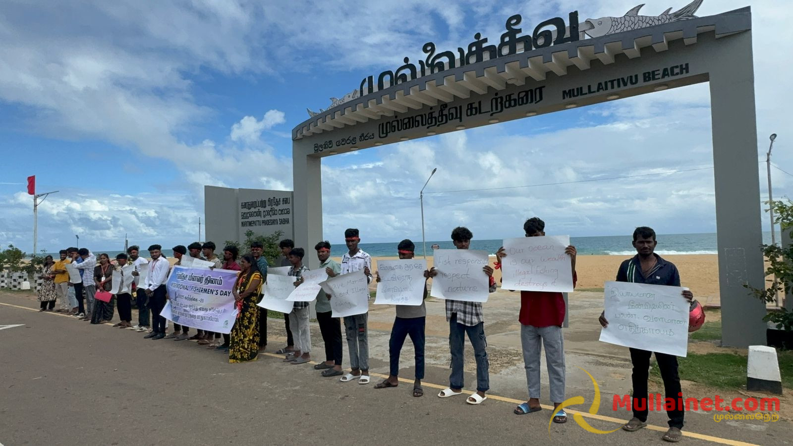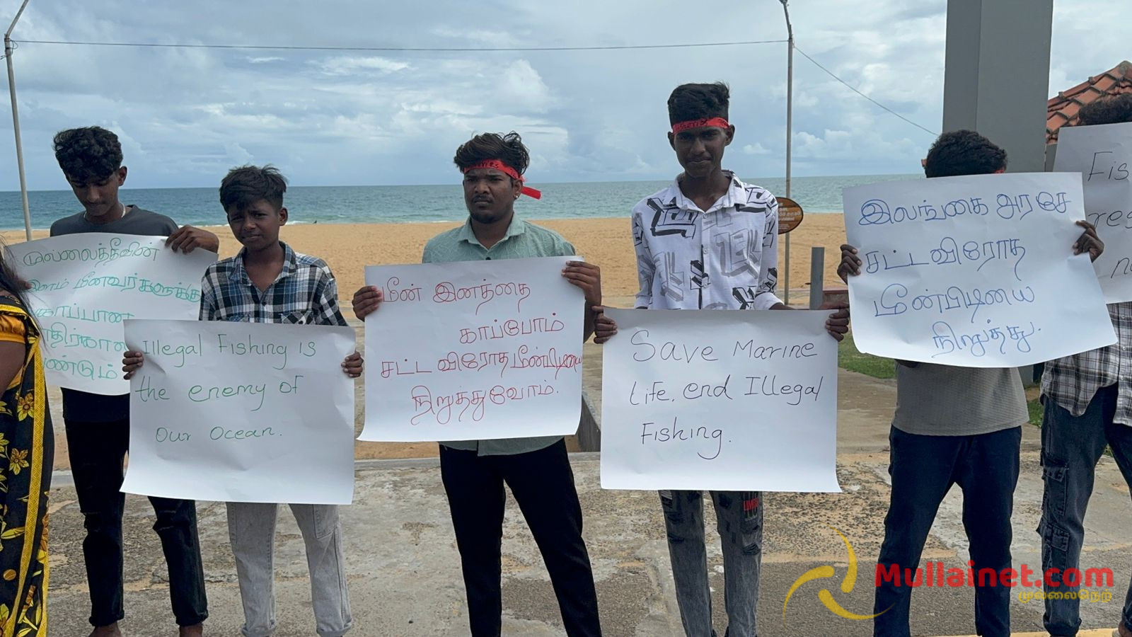 சட்டவிரோத மீன்பிடியை இலங்கை அரசாங்கம் முற்றுமுழுதாக தடை செய்ய வேண்டும் என வலியுறுத்தி நடைபவனியில் பங்கேற்ற இளைஞர்கள் முல்லைத்தீவின் இளம் மீனவர்களுக்கு பாதுகாப்பான எதிர்காலம் வேண்டும், முல்லைத்தீவு கடற்கரையை காக்க சட்டவிரோத மீன்பிடியை நிறுத்தவும், கடலை பாதுகாப்போம் சட்டவிரோதத்தை தடுப்போம், எங்கள் பாரம்பரிய கடலில் உங்கள் சட்டவிரோத படகுகள் வேண்டாம் போன்ற பல்வேறு பதாதைகளை ஏந்தியவாறு நடைபவனியில் கலந்து கொண்டிருந்தனர்.