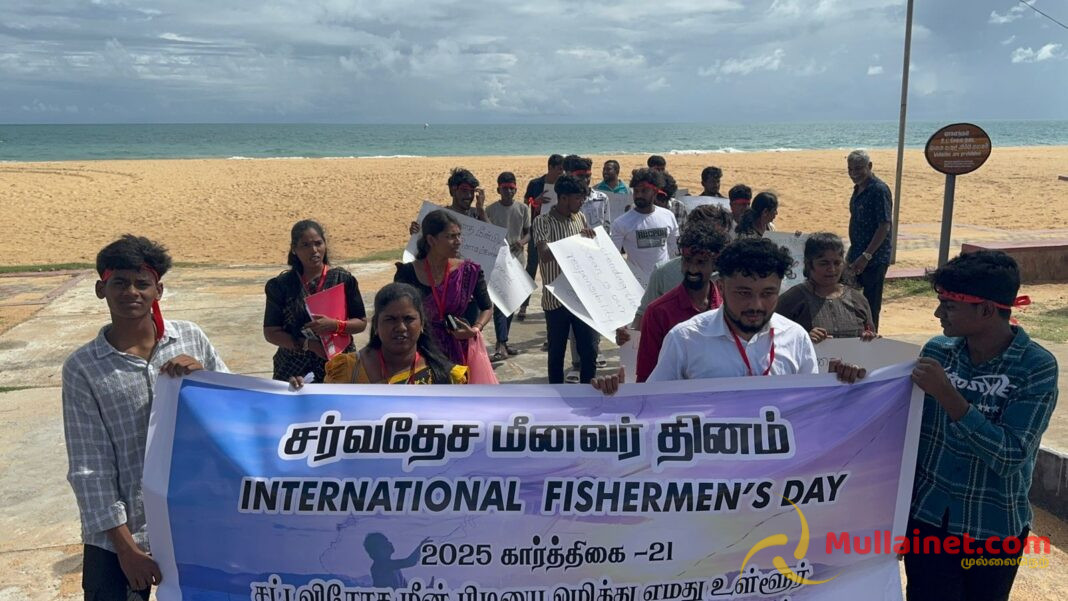 முல்லைத்தீவு கடற்கரையில் சர்வதேச மீனவர் தினத்தை முன்னிட்டு இன்றையதினம் “சர்வதேச மீன்பிடியை ஒழித்து எமது உள்ளூர் மீனவர்களின் வாழ்வாதாரத்தை பாதுகாப்போம்” என்ற தொனிப்பொருளில் விழிப்புணர்வு நடைபவனி ஒன்று இடம்பெற்றது.