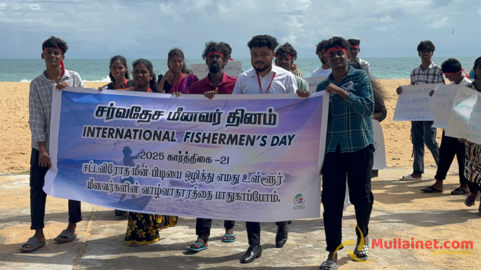 சூழலியல் மற்றும் சமூக அபிவிருத்திக்கான நிறுவனத்தின் ஏற்பாட்டில் முல்லைத்தீவு மாவட்ட கரையோர இளைஞர்கள் இணைந்து இன்றையதினம் (21.11.2025) காலை நடைபெற்ற இந்நடைபவனியில், கடல்சார் வளங்களை பாதுகாக்கவும், உள்ளூர் மீனவர்களின் வாழ்வாதாரத்தை வலுப்படுத்தவும் அனைவரும் ஒற்றுமையுடன் செயல்பட வேண்டியதன் அவசியம் வலியுறுத்தப்பட்டது.