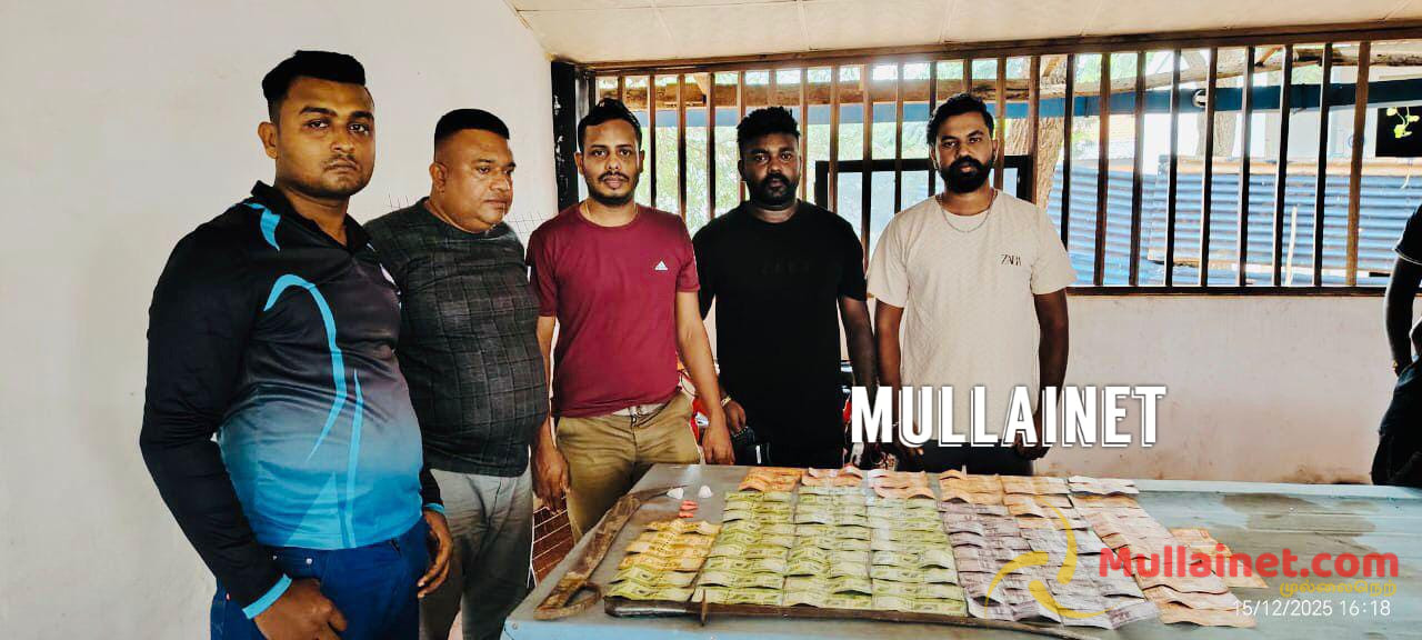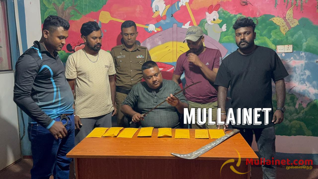முல்லைத்தீவு மாவட்ட சிரேஷ்ட பொலிஸ் அத்தியட்சகர் அடசூரிய அவர்களின் ஆலோசனையின் கீழ் மாவட்ட குற்றத்தடுப்பு பிரிவின் பொறுப்பதிகாரி பொலிஸ் பரிசோதகர் திலின அவர்களின் வழிகாட்டலில் மாவட்ட புலனாய்வு பிரிவின் உத்தியோகத்தர் பொலிஸ் கொஸ்தாபிள் ஆருஸிற்கு கிடைத்த இரகசிய தகவலின் அடிப்படையில், மாவட்ட குற்றத்தடுப்பு பிரிவின் உத்தியோகத்தரான பொலிஸ் சார்ஜன் (37109) ரத்னாயக்க தலைமையில், பொலிஸ் கொஸ்தாபிள்கள் (12334) சந்தருபான், (25253) கிருஷாந், (100585) டில்ஷான், பெண் பொலிஸ் கொஸ்தாபிள் (13027) றுவந்தி மற்றும் பொலிஸ் கொஸ்தாபிள் சாரதி (80232) பிரியந்த ஆகியோர் இணைந்து குறித்த சுற்றிவளைப்பை மேற்கொண்டனர்.
