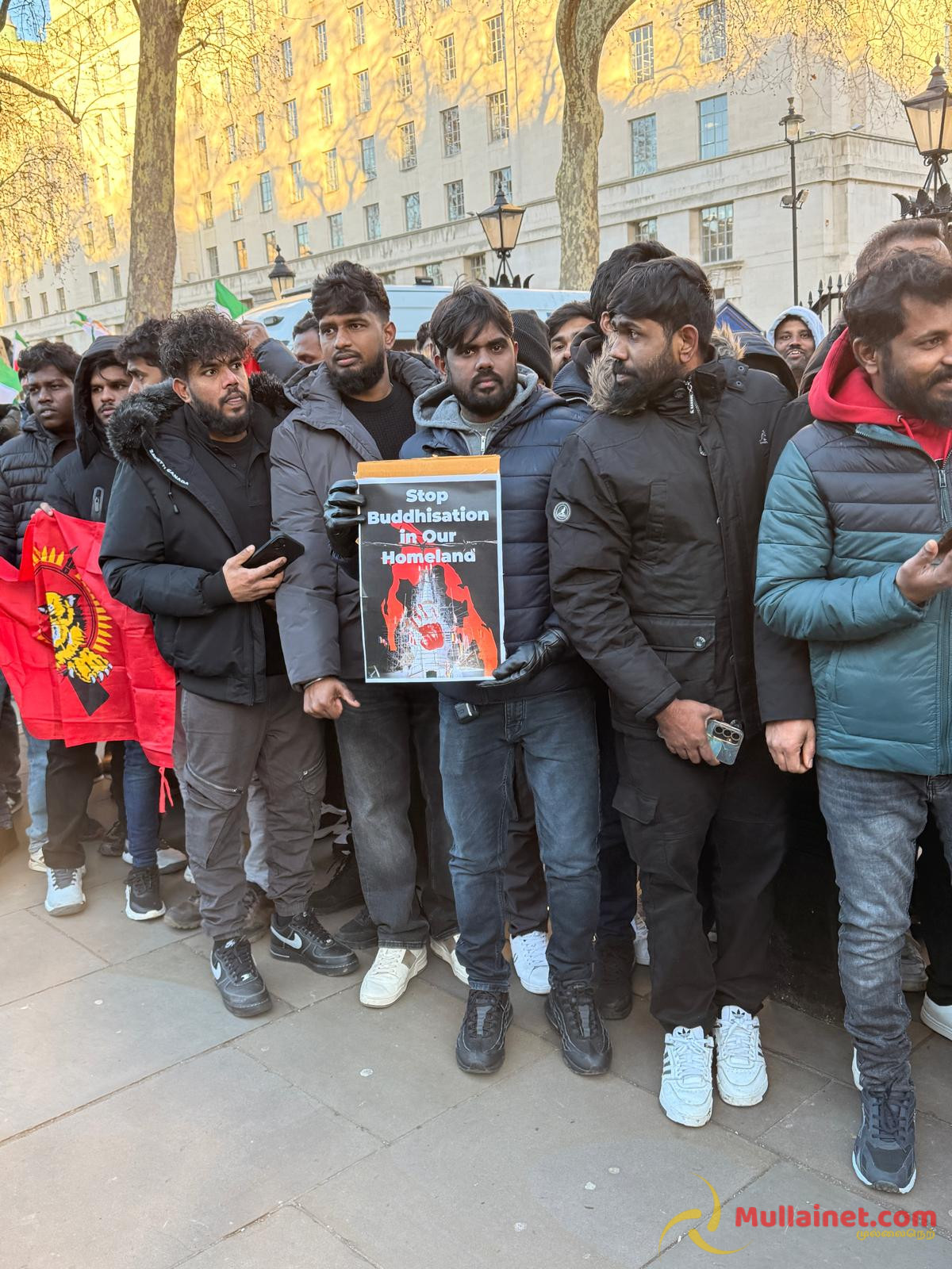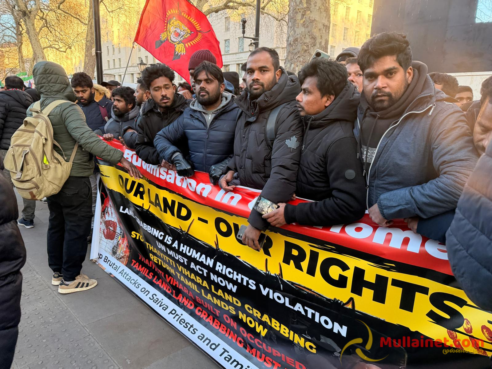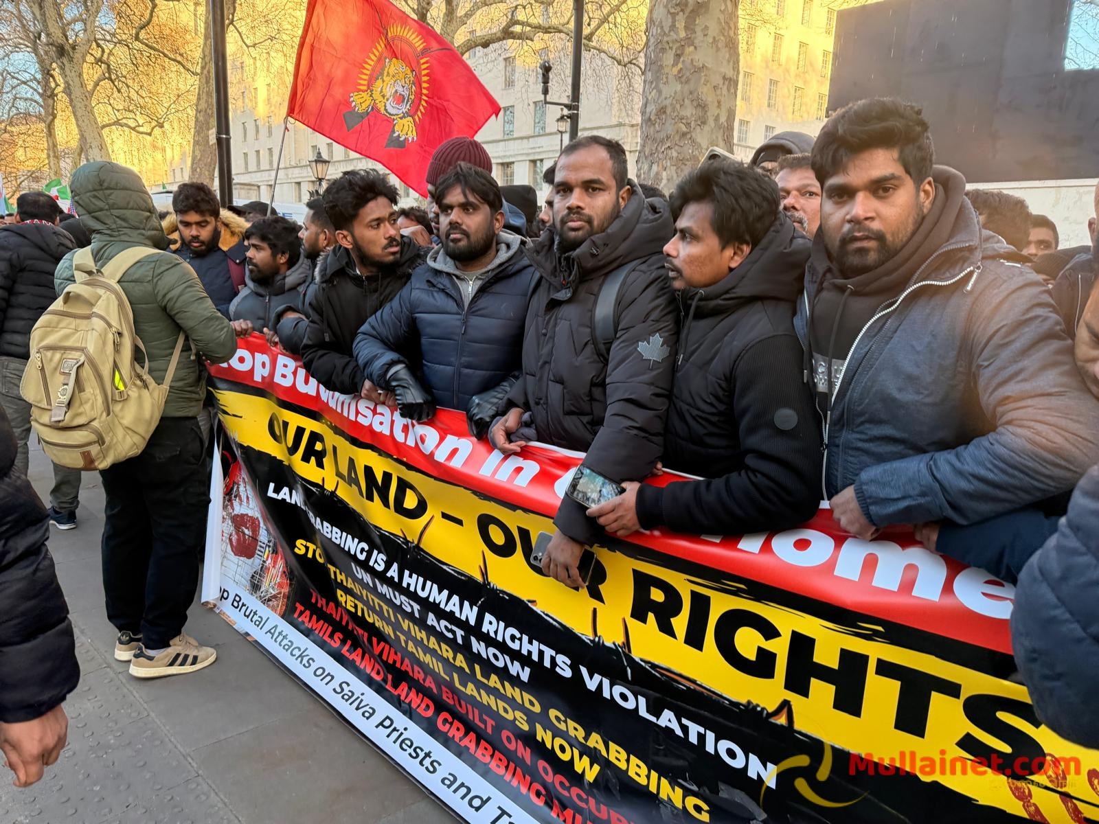 யாழ்ப்பாணம் தையிட்டியில் சட்டவிரோதமாக அமைக்கப்பட்ட விகாரைக்கு எதிராக மக்களால் முன்னெடுக்கப்படும் தொடர் போராட்டத்தில் கடந்த மார்கழி 21ம் திகதி அன்று மதகுரு வேலன் சுவாமி உட்பட 5 தமிழர்கள் இலங்கை காவல் துறையினரால் காட்டுமிராண்டித் தனமாக தாக்கப்பட்டு கைது செய்யப்பட்டதனை கண்டித்தும், தையிட்டியில் சட்டவிரோதமாக அமைக்கப்பட்ட விகாரையை அகற்றக் கோரியும் நேற்றையதினம் (03.01.2026) சனிக்கிழமை லண்டன் டோவ்னிங் (Downing street) பகுதியில் மாபெரும் கண்டன ஆர்ப்பாட்டம் இடம்பெற்றிருந்தது.