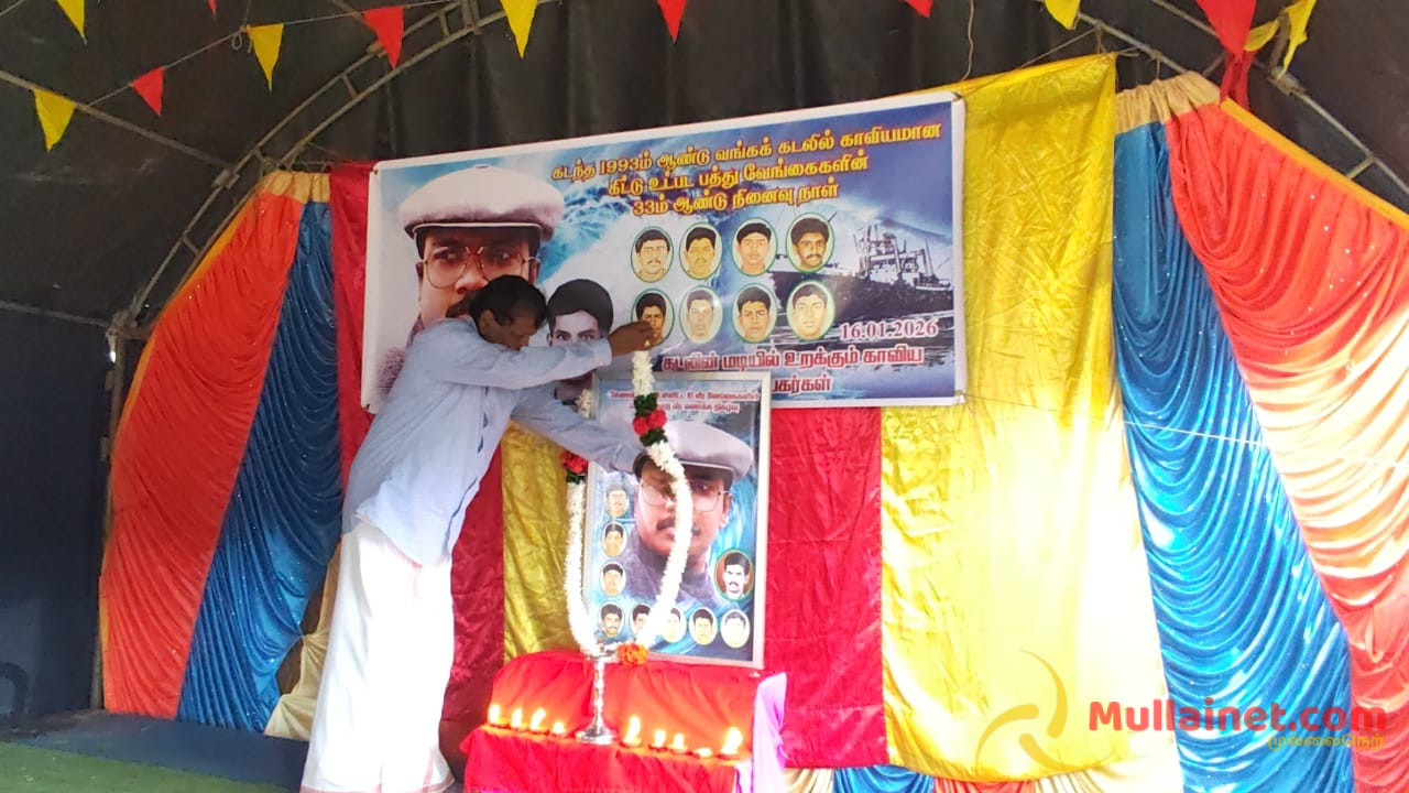 கடந்த 1993ஆம் ஆண்டு வங்கக்கடலில் வீரகாவியமான விடுதலைப்புலிகளின் முத்த தளபதிகளில் ஒருவரான கேணல் கிட்டு உள்ளிட்ட பத்து மாவீரர்களின் 33ஆம் ஆண்டு நினைவேந்தல் நிகழ்வுகள் 16.01.2026 நேற்று முல்லைத்தீவு மாவட்டத்தின் இறுவேறு இடங்களில் உணர்வெழுச்சியுடன் முன்னெடுக்கப்பட்டன.