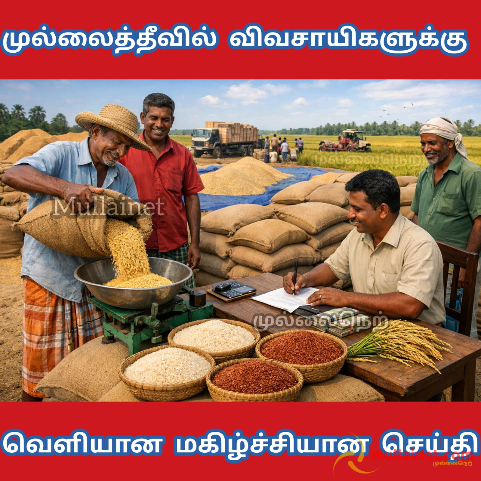 நெல் சந்தைப்படுத்தல் சபையினர் விவசாயிகளுக்கு மகிழ்ச்சியான செய்தி ஒன்றினை இன்றையதினம் வெளியிட்டுள்ளனர்.